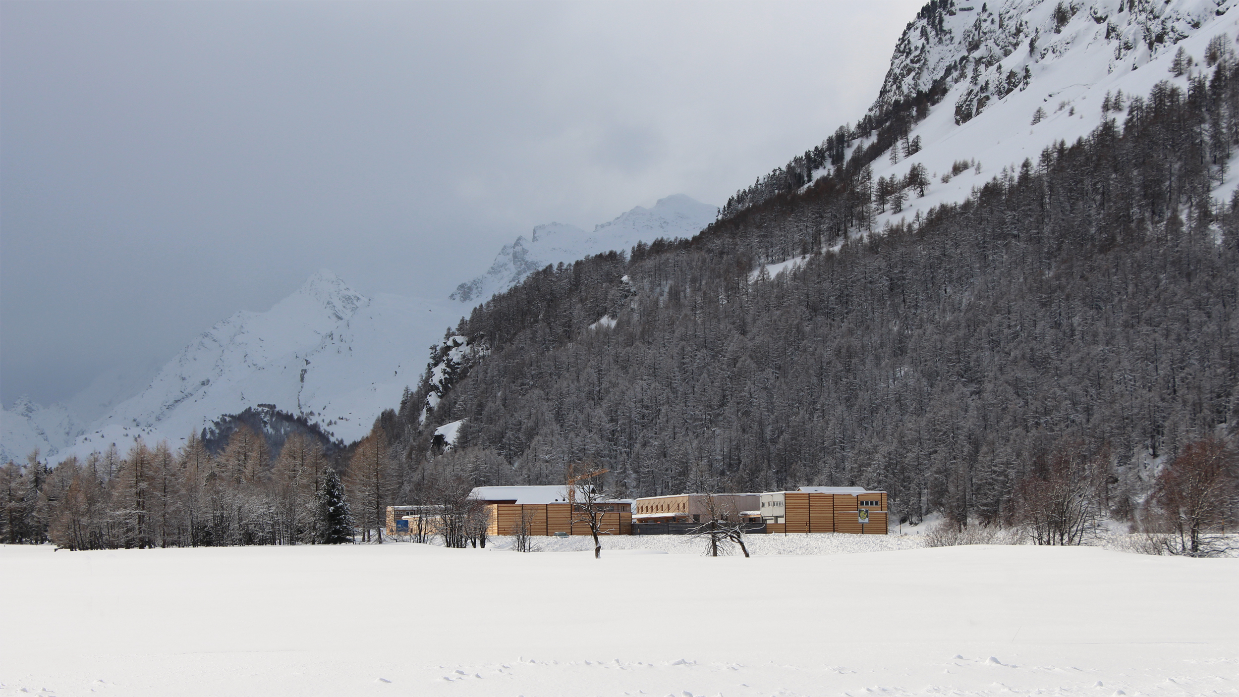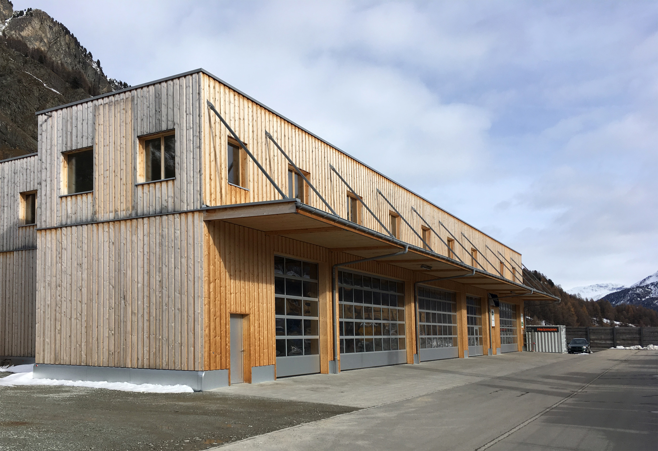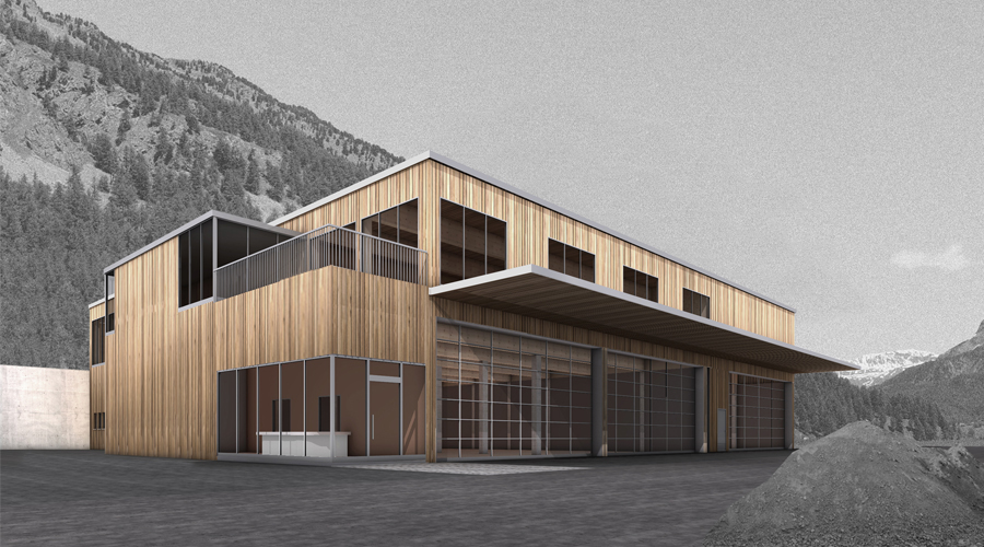 Um dem lokalen Gewerbe zusätzlichen Raum zu bieten, wurde in Sils die bestehende, kleine Gewerbezone erweitert. Die Erweiterung erfolgte in der Ebene in Richtung Silvaplanersee. Da dieses Gebiet lawinengefährdet ist, musste bergseits eine schützende Betonwand errichtet werden. Vor diesem Hintergrund wurde das Konzept der «Umzäunung» weiterentwickelt und zur Strassenseite hin mit Holzverkleidungen sowie später mit vertikalen Photovoltaikanlagen ergänzt.